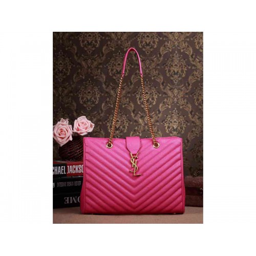 Borsa shopping classica monogramma Yves Saint Laurent in pelle trapuntata grain de poudre fucsia rossetto